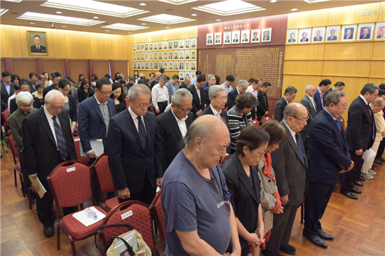 在場人士默哀懷念饒宗頤(圖:香港中通社)