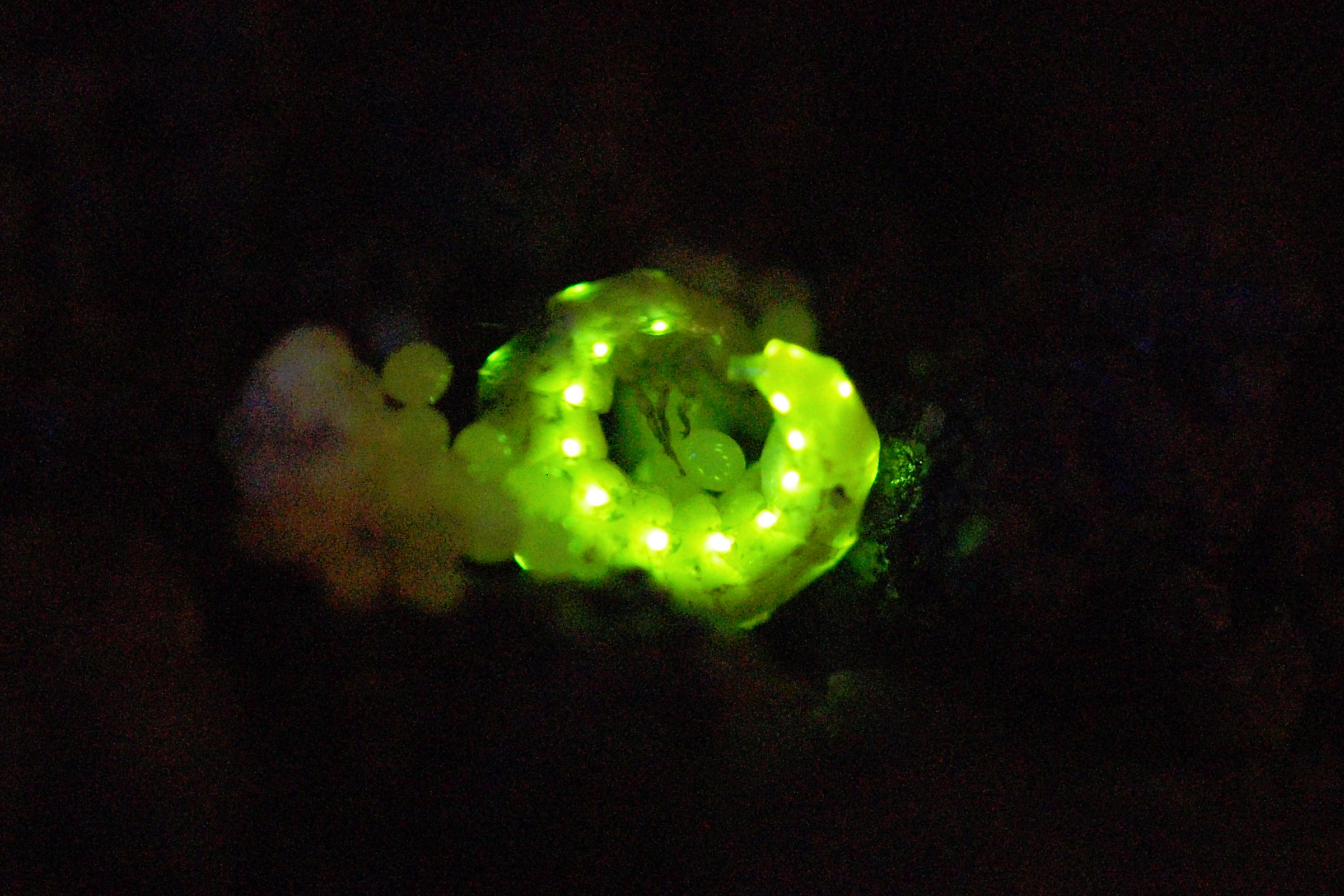 寒冬凹眼螢雌螢產卵後會發出33點光,吸引雄螢前來。(香港昆蟲學會提供)