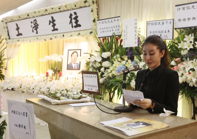 被譽為「世界電剪大王」的前全國政協文史和學習委員會副主任計佑銘喪禮昨日舉辦,其女兒計艷莉(見圖)代表家屬致謝詞,表示會去完成父親未完成的事業,為國家、為香港、為家鄉多做益事。計佑銘遺孀魏鳳英亦表達對亡夫的不捨與祝願。