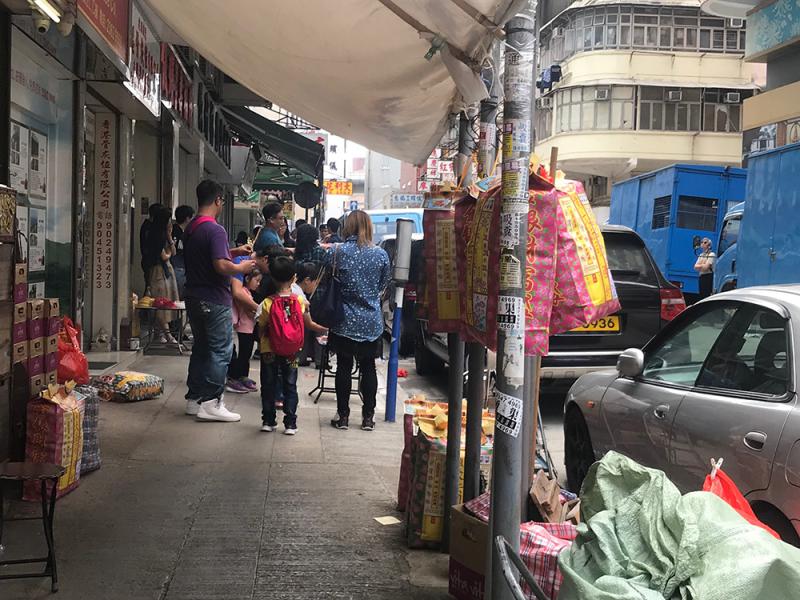 圖:孝子賢孫一家大細,街上拜祭先人\大公報記者朱樂怡攝