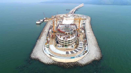 港珠澳大橋主體工程島隧工程採用設計施工總承包的模式,承包人負責施工圖設計和工程施工。大橋管理局建立質量控制體系,在承包人質量自檢基礎上,由監理工程師進行檢查監理,管理局委託試驗檢測中心進行材料試驗與質量抽檢,委託咨詢工程師和質量顧問進行設計咨詢和質量方面的相關監管,同時委託澳門土木工程試驗室對混凝土生產及構件預制質量控制體系進行第三方認證,確保對承包人施工監管和對工程質量進行有效控制管理。根據人工島島隧結合部(島頭區)的工程情況,為減少沉管隧道上部荷載,控制不均勻沉降,承包人對防浪牆採用了直立式空心沉箱護岸結構, 空心沉箱外側護岸採用了潛堤。護岸扭工字塊從南北兩側由外向內逐步過渡為潛堤,主要作用是防止船舶誤闖發生碰撞,從而保護沉管隧道安全。
