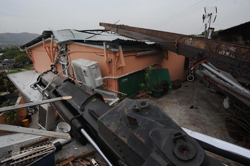 至於被壓毀村屋姓江男戶主,驚魂甫定後表示,他當時坐在床上看電視,突聽見一聲巨響,查看後見村屋屋頂嚴重損毀,幸無受傷,但已飽吃「驚風散」。