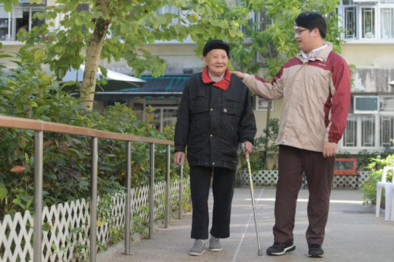 圖:劉秉燊(右)覺得長者貢獻良多,陪伴他們走過人生最後一段路,別具意義