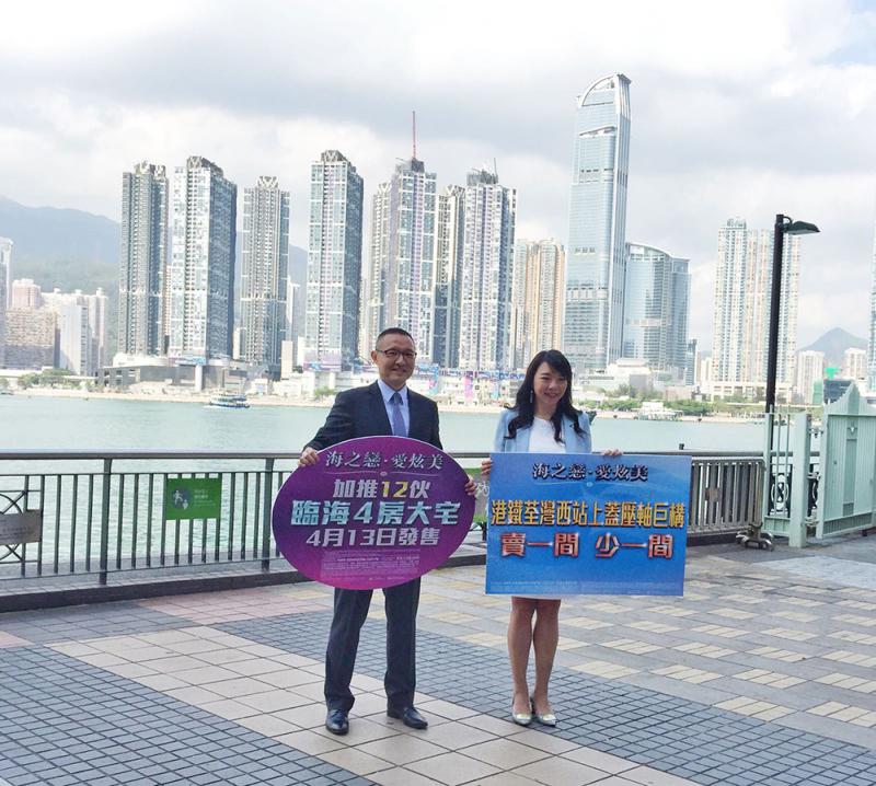 圖:郭子威(左)稱,愛炫美僅餘68伙可售。旁為高級營業經理封海倫