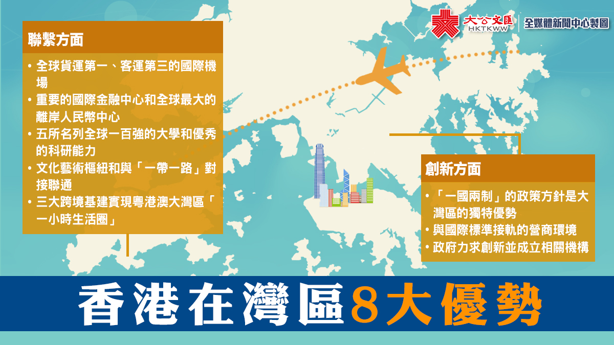 大公文匯全媒體報道:香港特區行政長官林鄭月娥昨日(9日)出席博鰲亞洲論壇年會的粵港澳大灣區分論壇。林鄭表示,香港無論在創新還是聯繫方面都可以為大灣區作出重要貢獻,並闡述香港在灣區的8大優勢。8大優勢分別是什麼,一圖告訴你。