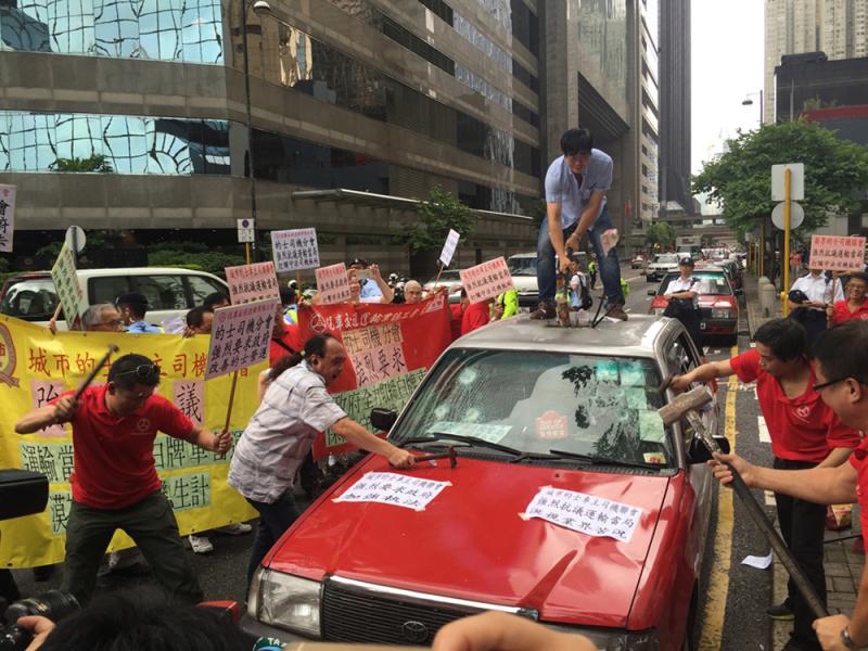 圖:的士業界過往多番示威,抗議「白牌車」搶客