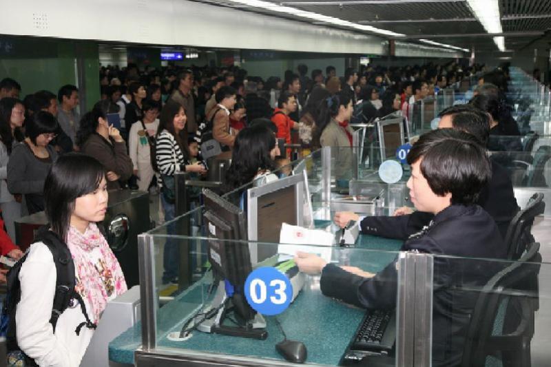 圖:香港與深圳一河之隔,每到周末,巿民北上訪親會友人頭湧湧
