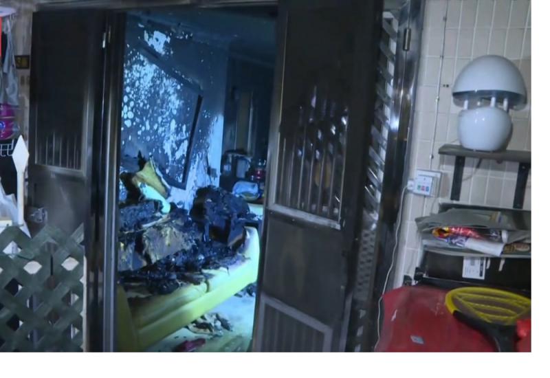 圖:大埔詹屋村一間村屋疑電蚊拍(箭咀示)充電時短路過熱引起火警