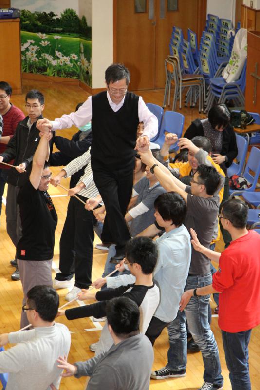 圖:黃偉東校長通過遊戲,與學校同工建立互信及團隊精神