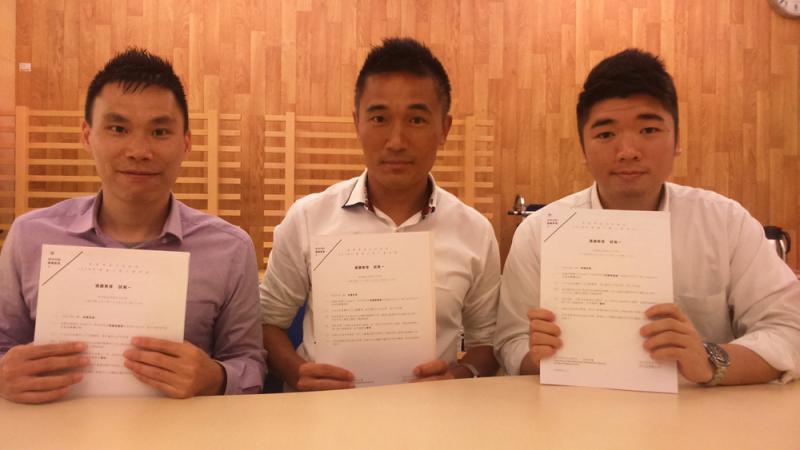 圖:徐曉琦(中)指,考場內有逾半考生做唔切。黃耀恆(左)則稱,卷一題二的用字較虛,考核考生的歸納能力才是真正分高下的地方\大公報記者楊綺青攝
