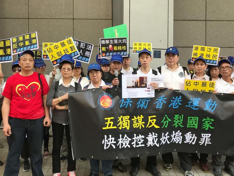 圖:「保衛香港運動」約30人昨日到警察總部示威,抗議戴耀廷公然「煽獨」/中通社