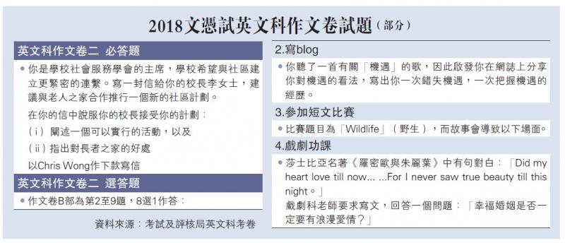 2018文憑試英文科作文卷試題(部分)