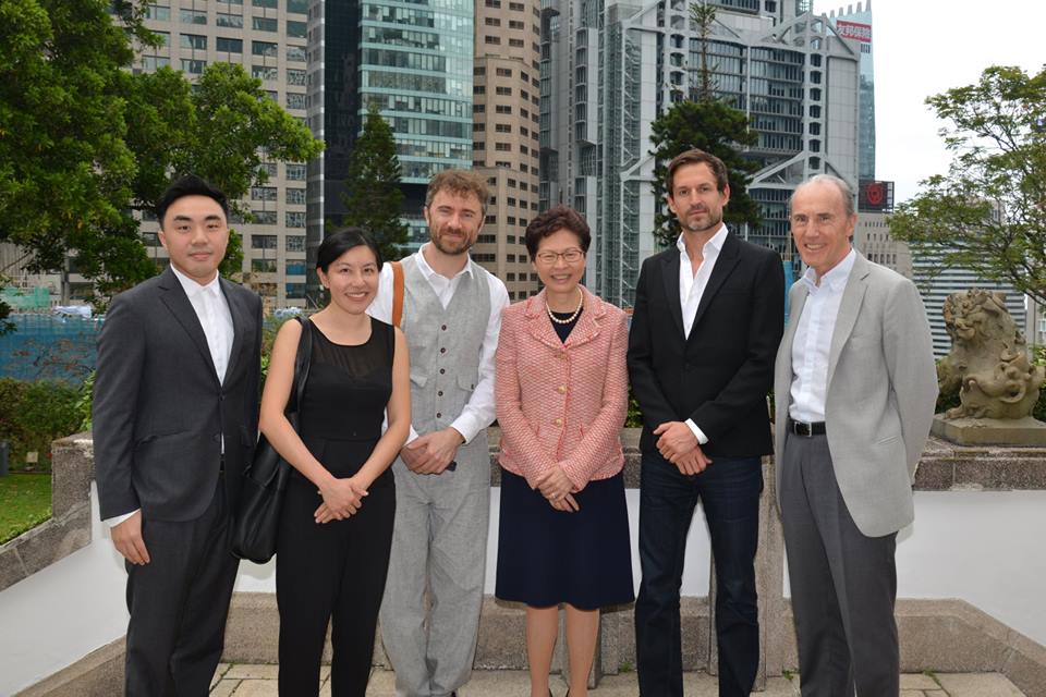 林鄭介紹到,設計北京CCTV總部大樓的Ole Scheeren和設計上海世博會英國館的Thomas Heatherwick等兩位大師級的建築師,早兩日曾到禮賓府作客。出席聚會的還有2位剛剛贏得西九文化區展亭設計比賽的年輕建築師。