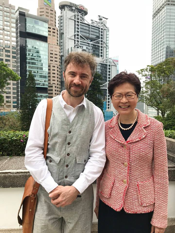 林鄭與曾設計上海世博會英國館的Thomas Heatherwick合影