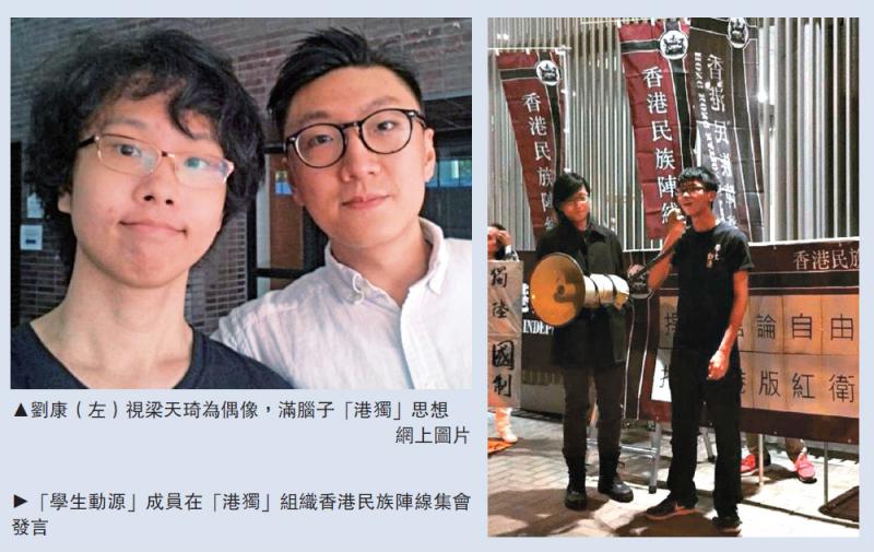 圖:劉康(左)視梁天琦為偶像,滿腦子「港獨」思想/網上圖片