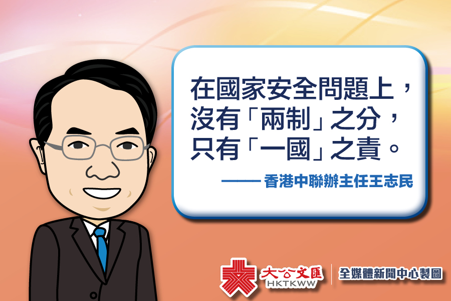 大公網訊 香港首次「全民國家安全教育日」活動今日(15日)上午在金鐘舉行。香港中聯辦主任王志民在致辭中強調,在國家安全問題上,沒有「兩制」之分,只有「一國」之責!他期待與所有愛香港、愛國家的700多萬香港同胞同心同行,堅守「一國兩制」初心,共同維護國家安全,推進香港「一國兩制」成功實踐、行穩致遠。
