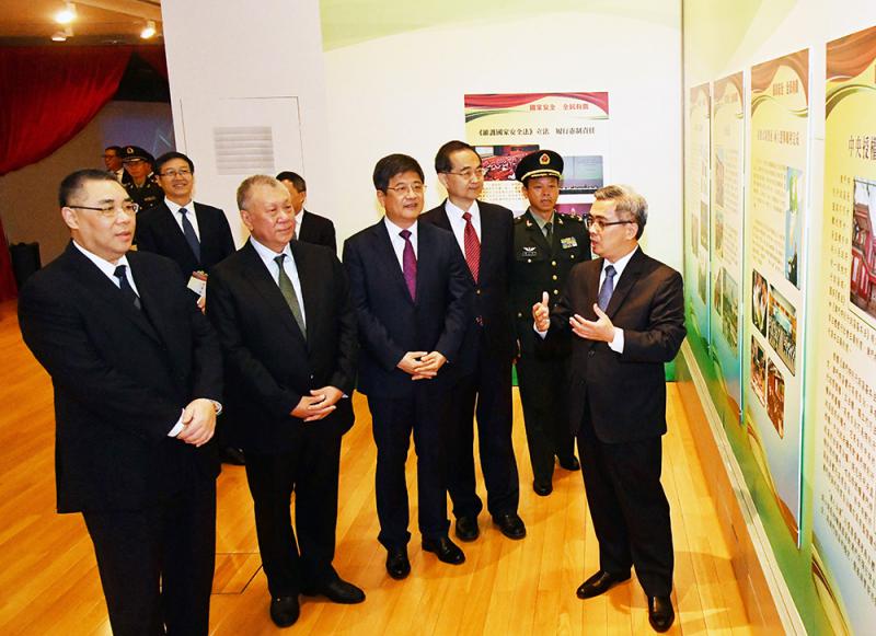 與會嘉賓隨後參觀了展覽,並觀看了宣傳片《總體國家安全觀》。展覽內容分為四個部分:第一部分介紹總體國家安全觀的時代背景及核心內容;第二部分主要介紹中共十八大以來中國在國家安全立法方面取得的成就;第三部分選擇了傳統安全和非傳統安全的八個重點領域具體介紹;第四部分介紹澳門特區在維護國家安全方面取得的成就。
