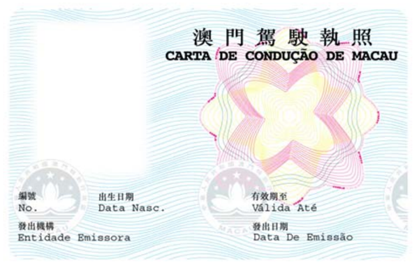 澳門駕駛執照示意圖 (澳門交通事務局網站)