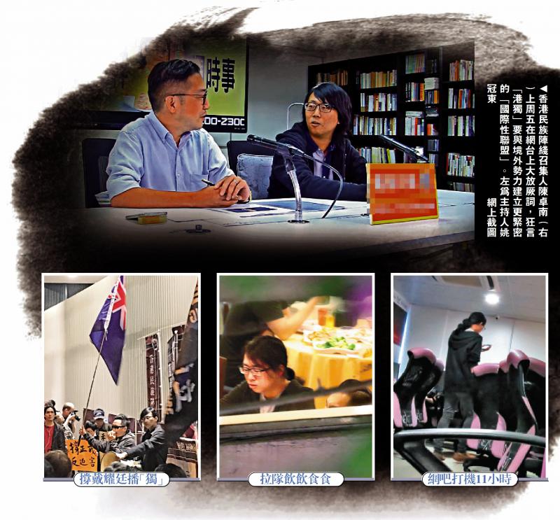 香港仍未就國家安全立法,「港獨」分子肆無忌憚,氣焰囂張。香港民族陣綫召集人陳卓南又在網台上大放厥詞,狂言「港獨」要與境外勢力建立更緊密的「國際性聯盟」,在行動上要與其他「獨立」勢力相配合,「如果我們(香港)七點鐘喊獨立,台灣、新疆、蒙古、西藏能夠在八點鐘跟隨。」他還叫囂,「港獨」勢力必須擁有武力,令中央和特區政府有所顧忌;又聲稱現時「港獨入校」計劃已轉為地下形式的滲透,「成效比較好」雲雲。本港政界人士怒斥宣獨言行,促請特區政府正視,立即採取切實行動維護國家安全。/大公報記者 冼國強