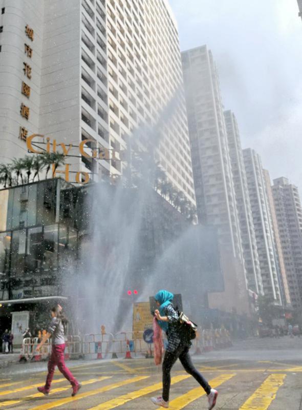 圖:北角城市花園五年爆14次水管,去年四月爆鹹水管更現10米「噴泉」