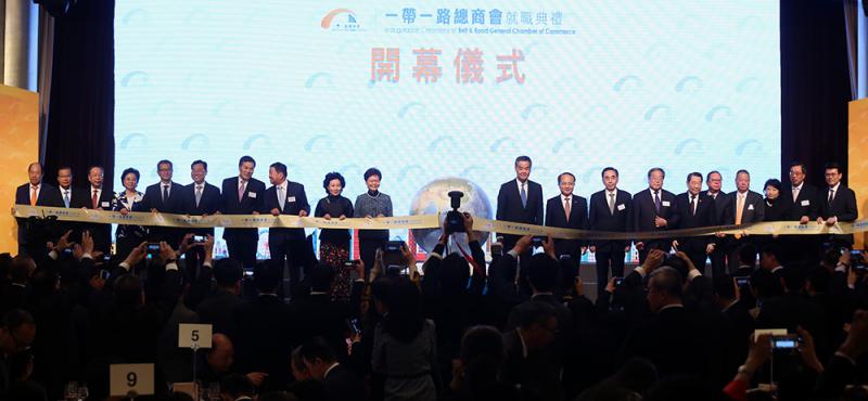 國家「一帶一路」倡議廣受歡迎,在昨日一帶一路總商會的就職典禮上,行政長官林鄭月娥表示,香港是「一帶一路」建設的重要節點,可發揮國際金融、貿易、航運及服務中心的作用,將「一帶一路」打造成最廣泛的國際合作平台。一帶一路總商會理事會主席林建岳則透露,總商會未來的三大工作方向,包括構建「一帶一路」華資分布大數據庫、組建「共商共建共享」民間平台,以及為華資開拓「一帶一路」商機提供智力支援。全國政協副主席梁振英、中聯辦主任王志民、外交部駐港公署特派員謝鋒等共同為活動主禮。/大公報記者 文軒