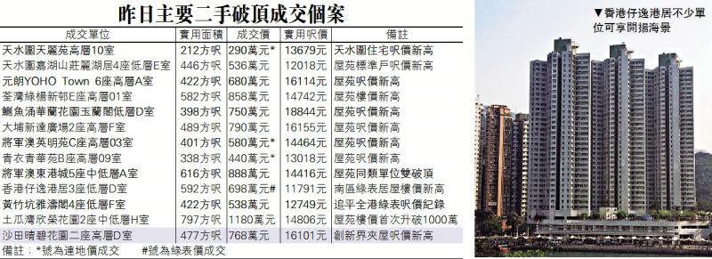 香港仔逸港居3座低層D室\&592方呎\&698萬元#\&11791元\&南區綠表居屋樓價新高\&