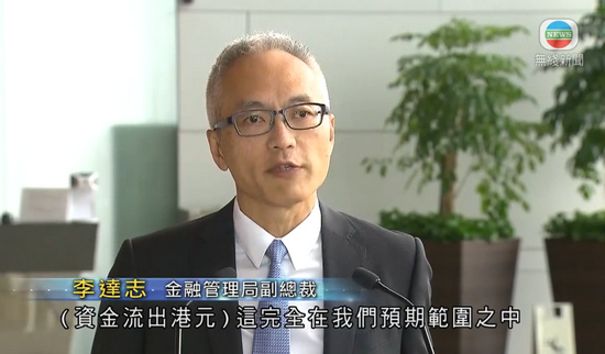 金管局副總裁李達志表示,目前並無看到大規模沽空港元的現象(電視截圖)