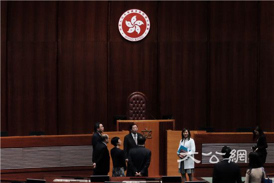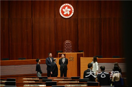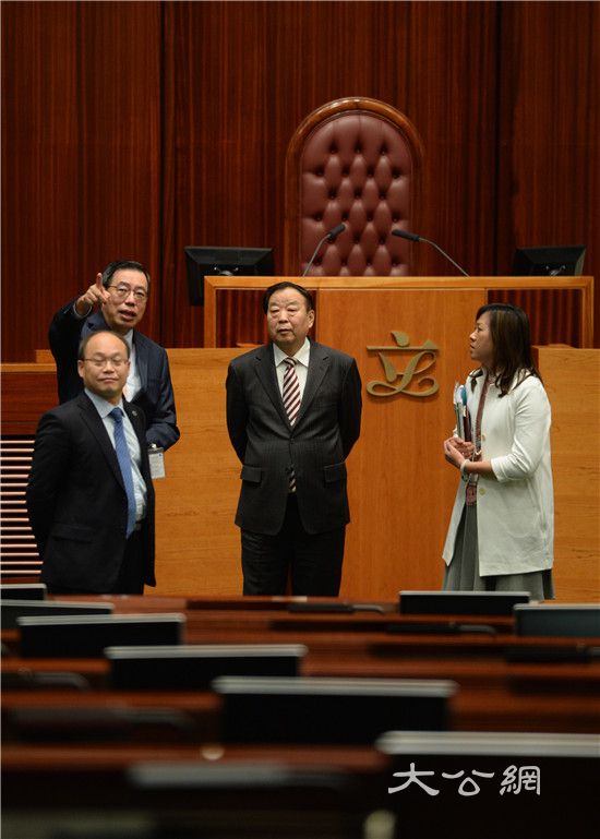梁君彥陪同喬曉陽參觀立法會會議廳