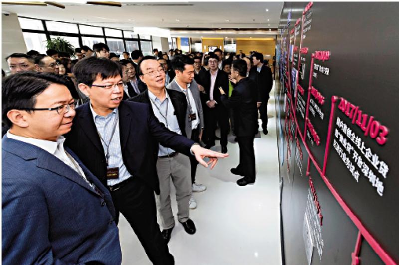 【大公報訊】記者毛麗娟報道:香港立法會議員大灣區考察團昨日參觀的首站是總部位於深圳的微眾銀行,在該行成長走廊了解了微眾銀行的成長歷史和業務特色。作為內地首家民營銀行和互聯網銀行,微眾銀行致力為普羅大眾、微小企業提供差異化、有特色、優質便捷的金融服務。2015年1月4日,國務院總理李克強視察微眾銀行,勉勵微眾銀行「在互聯網金融方面殺出一條路」。