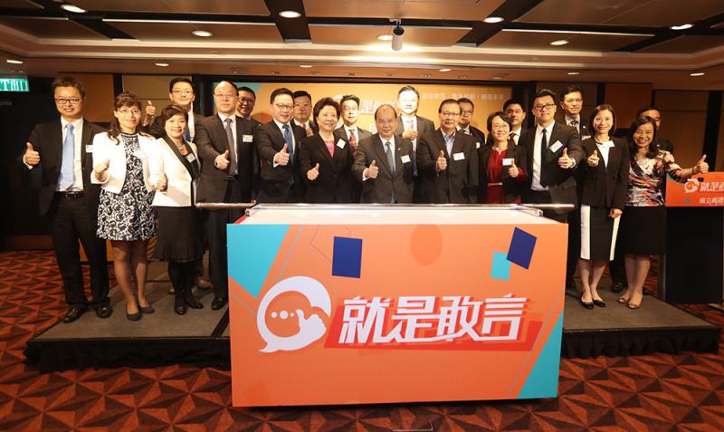 「就是敢言」昨日正式成立,政務司司長張建宗、中聯辦副主任仇鴻、港區全國人大常委會委員譚耀宗等出席支持。