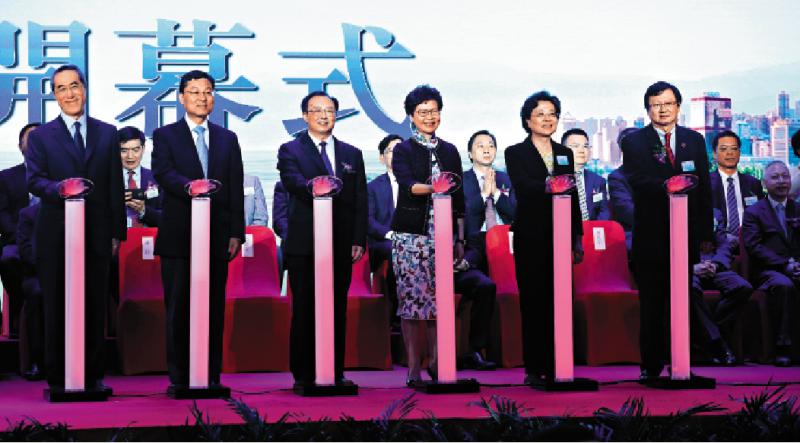 圖:江蘇文化嘉年華昨日揭幕,(左起)唐英年、謝鋒、吳政隆、林鄭月娥、仇鴻及馬忠禮等主持開幕禮