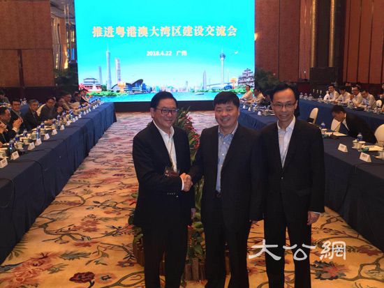 上午參觀無人機企業後,考察團參加「推進粵港澳大灣區建設交流會」,廣東省副省長歐陽衛民出席。