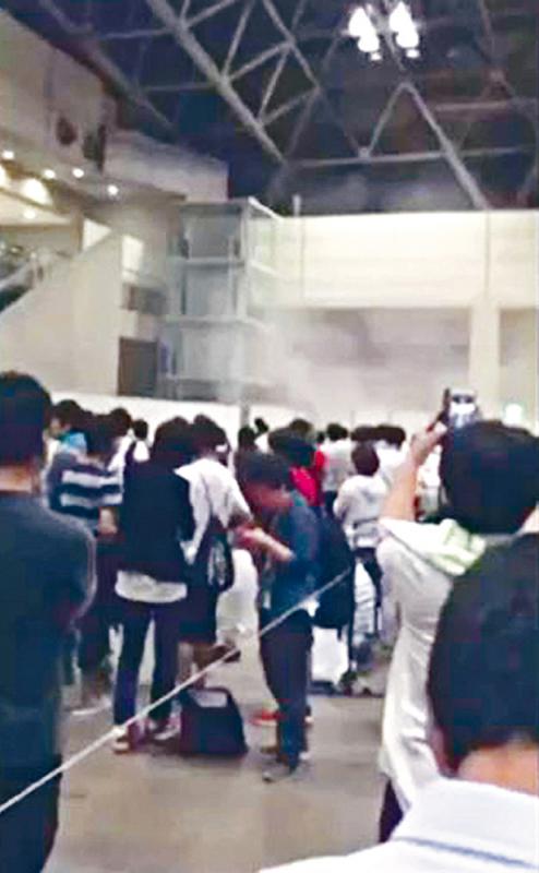 圖:日本有狂迷在偶像組合的握手會上點燃信號彈被制服 網上圖片