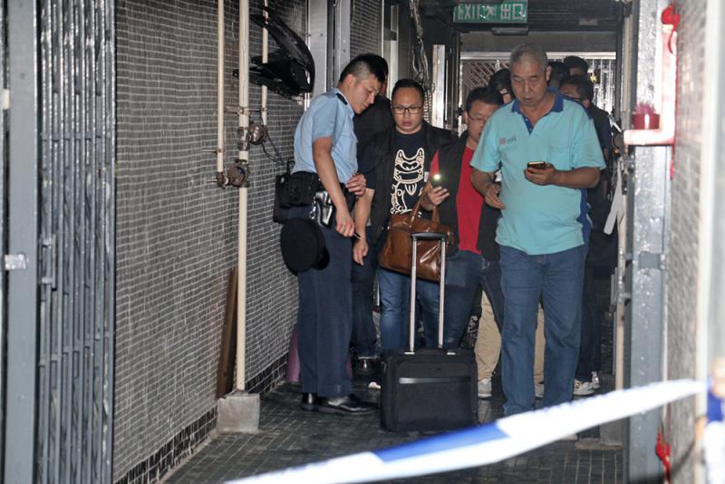 圖:警方在寶智樓縱火案現場調查 大公報記者周慶邦攝