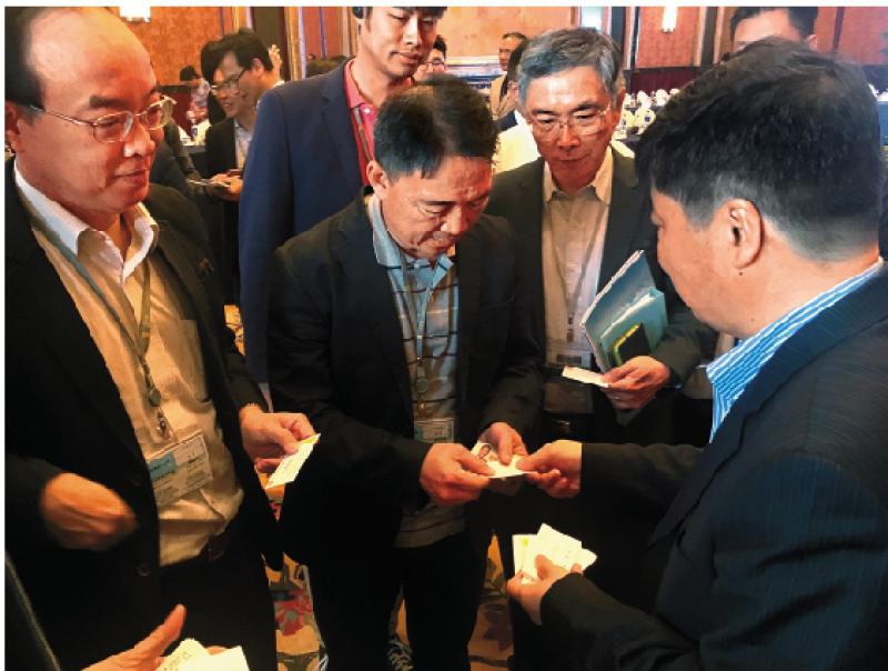 圖:胡志偉等議員主動上前,與廣東省副省長歐陽衛民交換名片