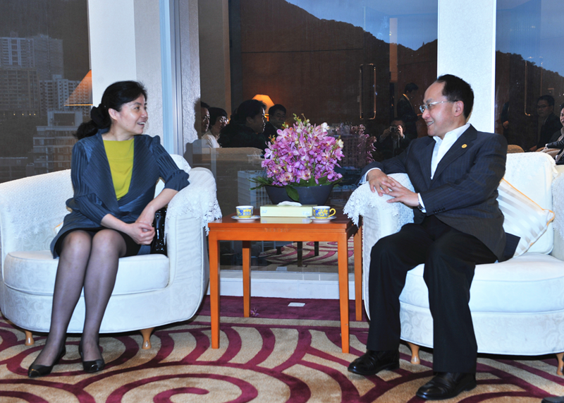 丁向群介紹了廣西經濟社會發展情況,以及桂港金融合作最新進展。王志民介紹了習近平總書記去年「七一」視察香港以後,香港社會出現的穩中向好的發展態勢。雙方還就深化桂港金融領域交流合作,共同打造面向東盟的南向通道等議題交換了意見。