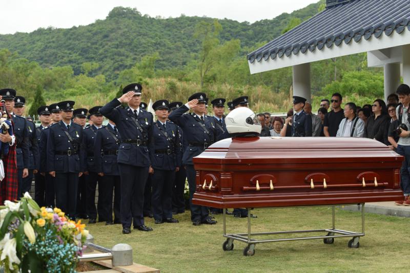 【大公報訊】記者周慶邦報道:盡忠職守的交通警員林海雲,早前在馬路處理交通意外時殉職,警隊昨為其舉行最高榮譽喪禮,行政長官林鄭月娥及多名高官相繼到場致哀。