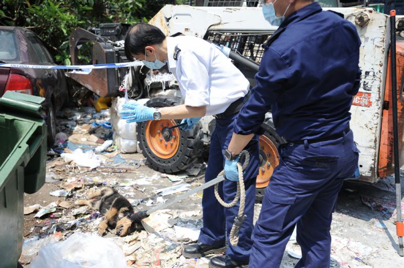 本月七日,一名曾姓女子報案,稱在茶果嶺大街木屋中,兩隻黑色唐狗奄奄一息,疑遭人毒害,遂報警求助。 大公報記者周慶邦(文)