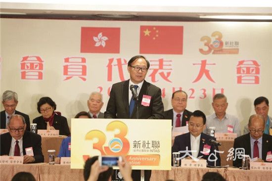 大公網4月23日訊 新界社團聯會(以下簡稱「新社聯」)今(23日),在荃灣舉行了第十二屆會員代表大會第二次會議,逾400名理事、代表出席。會長梁志祥在致開會辭時分享了出席「兩會」期間國家所提出影響深遠的憲法修訂和機構改革建議,在參觀粵港澳大灣區後所見到的發展機遇,認為新社聯與社會各界必須不失時機地搭上國家發展列車。