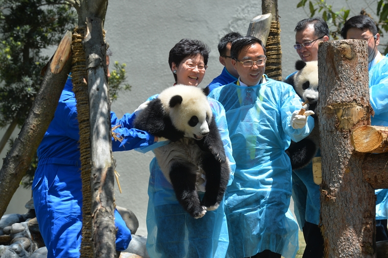 香港特首林鄭月娥(時任政務司司長)2016年曾到訪大熊貓研究中心(中國保護大熊貓研究中心官網圖片)
