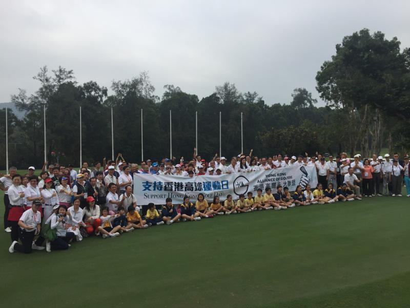 由本地20名高球運動員、教練、從業員等自發組成的大聯盟,昨日連同逾百名高球愛好者,在粉嶺高球場召開記者會。大聯盟召集人劉家樂稱,社會近日有聲音指高球是「有錢人玩意」,認為是把高球運動「妖魔化」,現階段雖不宜過早評論粉嶺高球場用地未來發展,但擔心政府或因「錯誤的意見,做出錯誤的決定。」