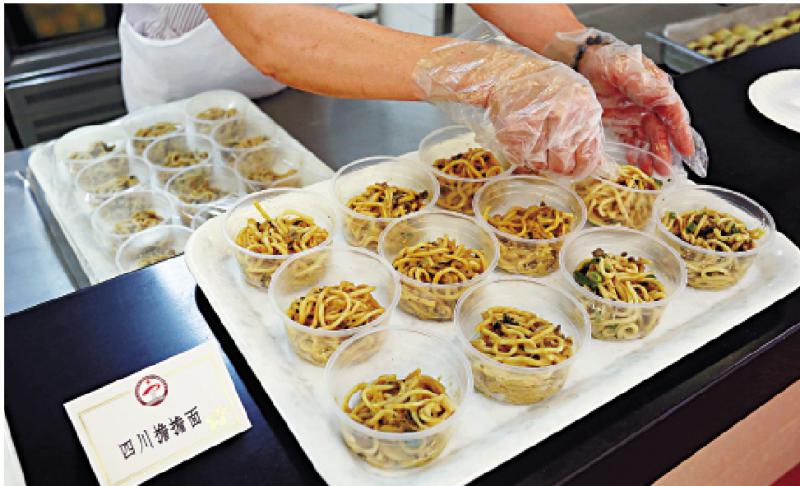 中聯辦大樓昨日首度舉辦開放日,獲邀的市民可到八樓員工飯堂一嘗中聯辦廚師的手藝。記者發現,飯堂匯聚全國多地美食,有四川擔擔麵、江蘇黃橋燒餅、天津麻花、東北驢打滾等,市民試過後紛紛讚不絕口。