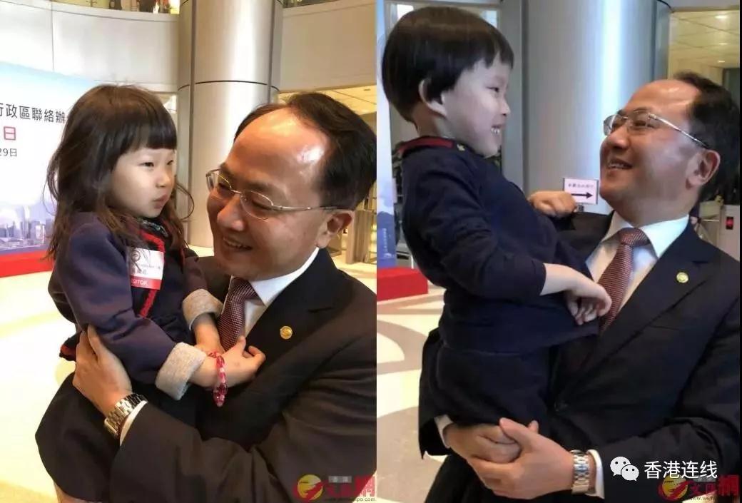 王志民抱起一名小女孩與她交談並合影(文匯網)