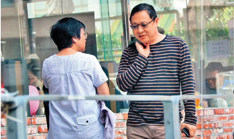 圖:在許智峯搶機後為其「祈禱」的戴耀廷,行街時也用力抓緊手機,「防搶」警惕性甚高