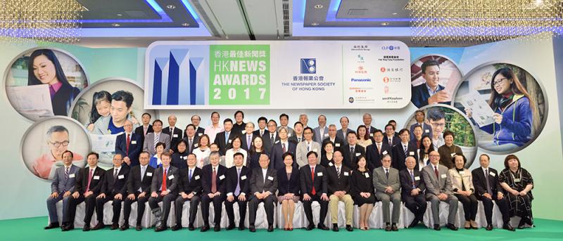 香港報業公會昨日舉行「2017年香港最佳新聞獎」頒獎禮,「大公文匯傳媒集團」共奪14個獎項,包括三冠五亞兩季四優異,《大公報》奪得兩項冠軍、兩項亞軍、一項季軍及兩項優異獎,成績有目共睹。行政長官林鄭月娥在頒獎禮上表示,特區政府重視新聞及言論自由,這是香港的核心價值及相對優勢,無論是發展經濟、改善民生或政治上有更好發展,都需要有傳媒的公正深入報道。\大公報記者 賴振雄