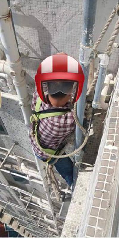 圖:工人為減低收費搶生意不搭棚,32樓爬出外牆修理水管\讀者提供