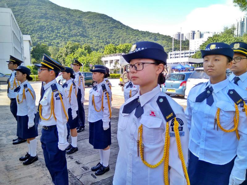 圖:身為福建中學(小西灣)升旗隊隊員的李詩韻(前),最想與財政司司長陳茂波同行