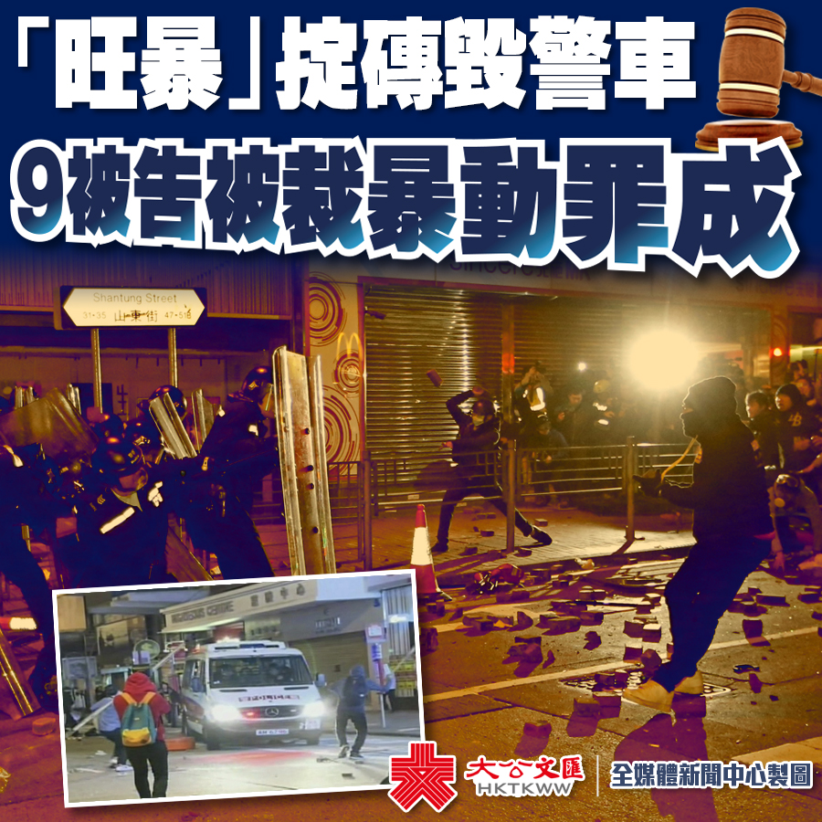 大公文匯全媒體綜合報道:2016年大年初一香港旺角發生暴亂,有10名疑犯被控暴動和刑事毀壞等11項罪名。西九龍裁判法院今日下午(2日)裁定,除被告吳挺愷早前已承認1項暴動罪外,其餘9名被告暴動罪罪成。