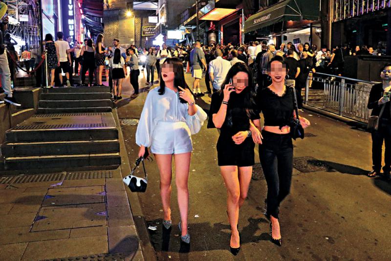 有酒保透露,部分女子是違反逗留條件賣淫的非本港居民;三五成群的南亞和非洲裔男子,不時聚集街頭巷尾,但似乎不是酒客,形跡可疑。