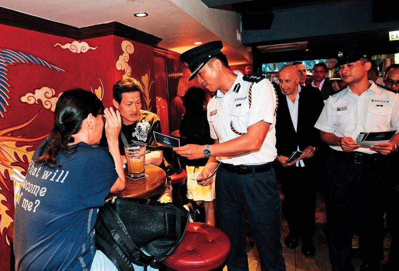 為令市民和中外遊客安心到蘭桂坊消遣,中區警區與蘭桂坊協會合作的「蘭桂坊守望約章」昨日正式啟動。警方中區指揮官呂錦豪總警司和蘭桂坊協會主席盛智文,昨傍晚主持啟動儀式,港島區指揮官余達松助理處長、立法會議員張宇人等亦有出席。呂錦豪表示,該約章是嶄新的社區警政計劃,透過與蘭桂坊協會及商戶緊密合作,防止與酒精有關暴力案件和「搵快錢」等罪案,為公眾帶來更安全好玩的消遣地方。
